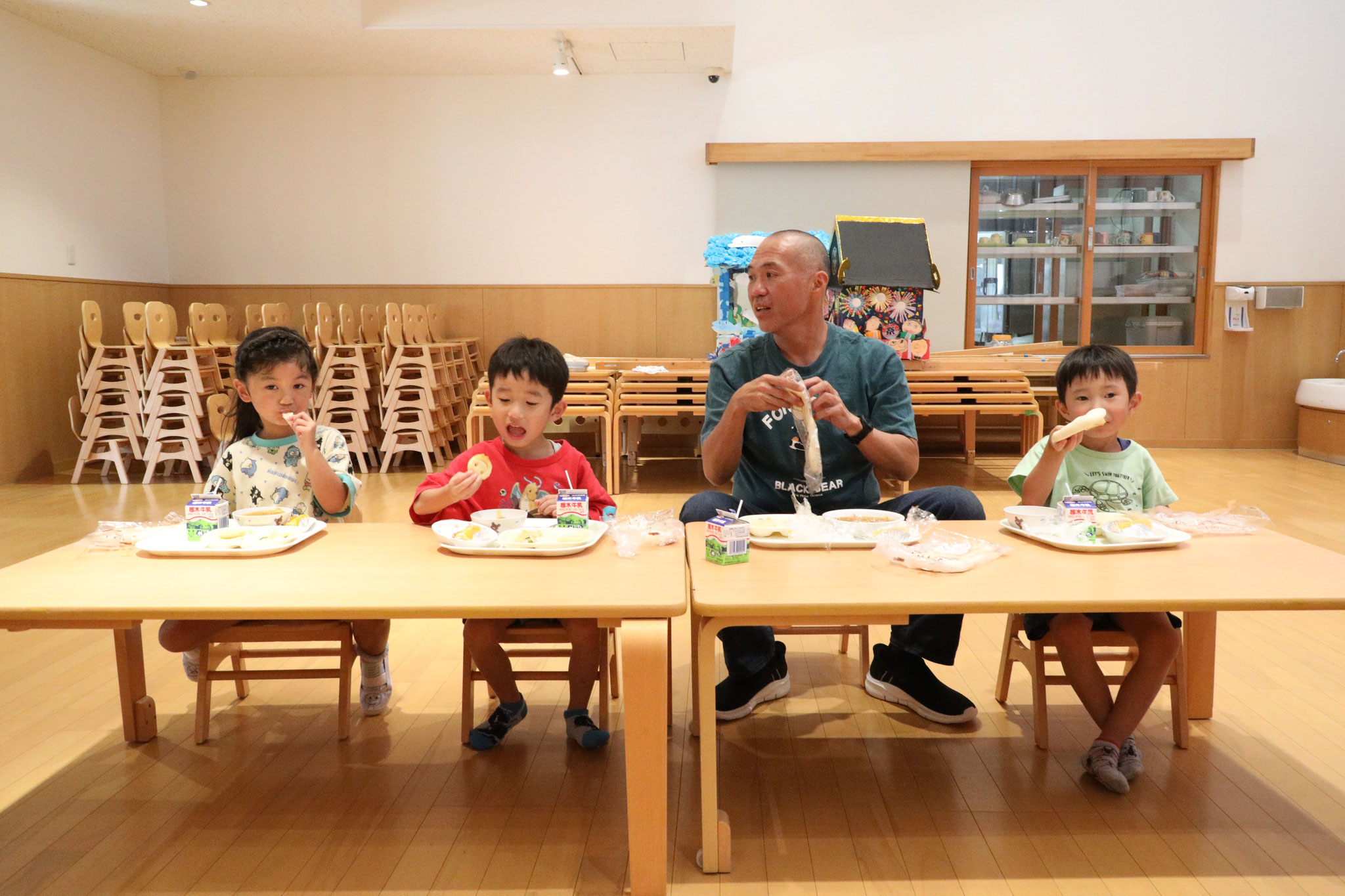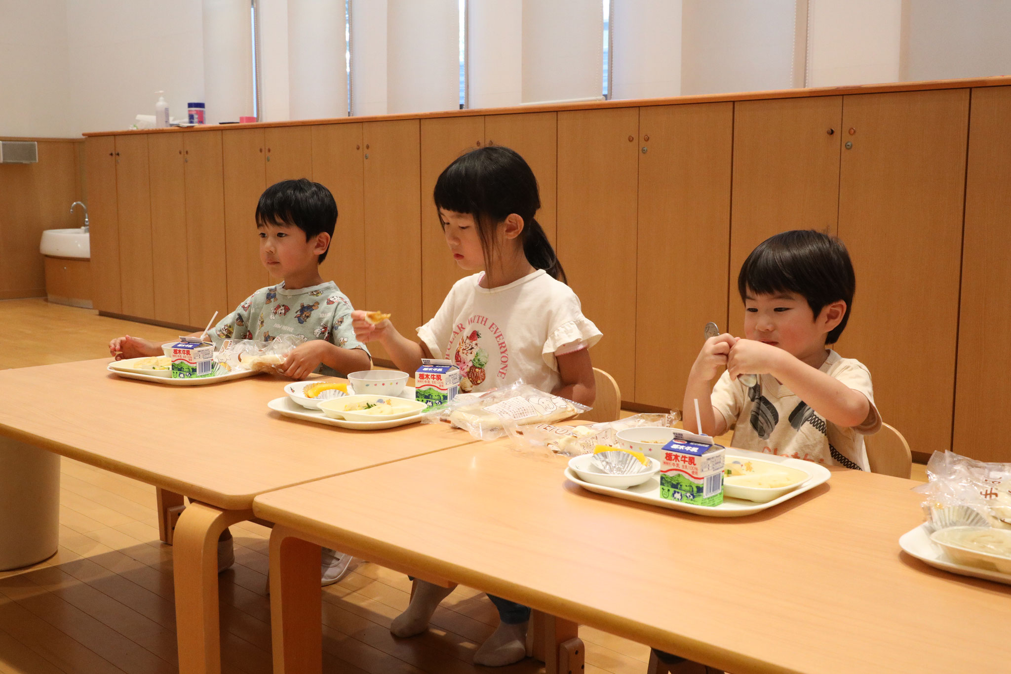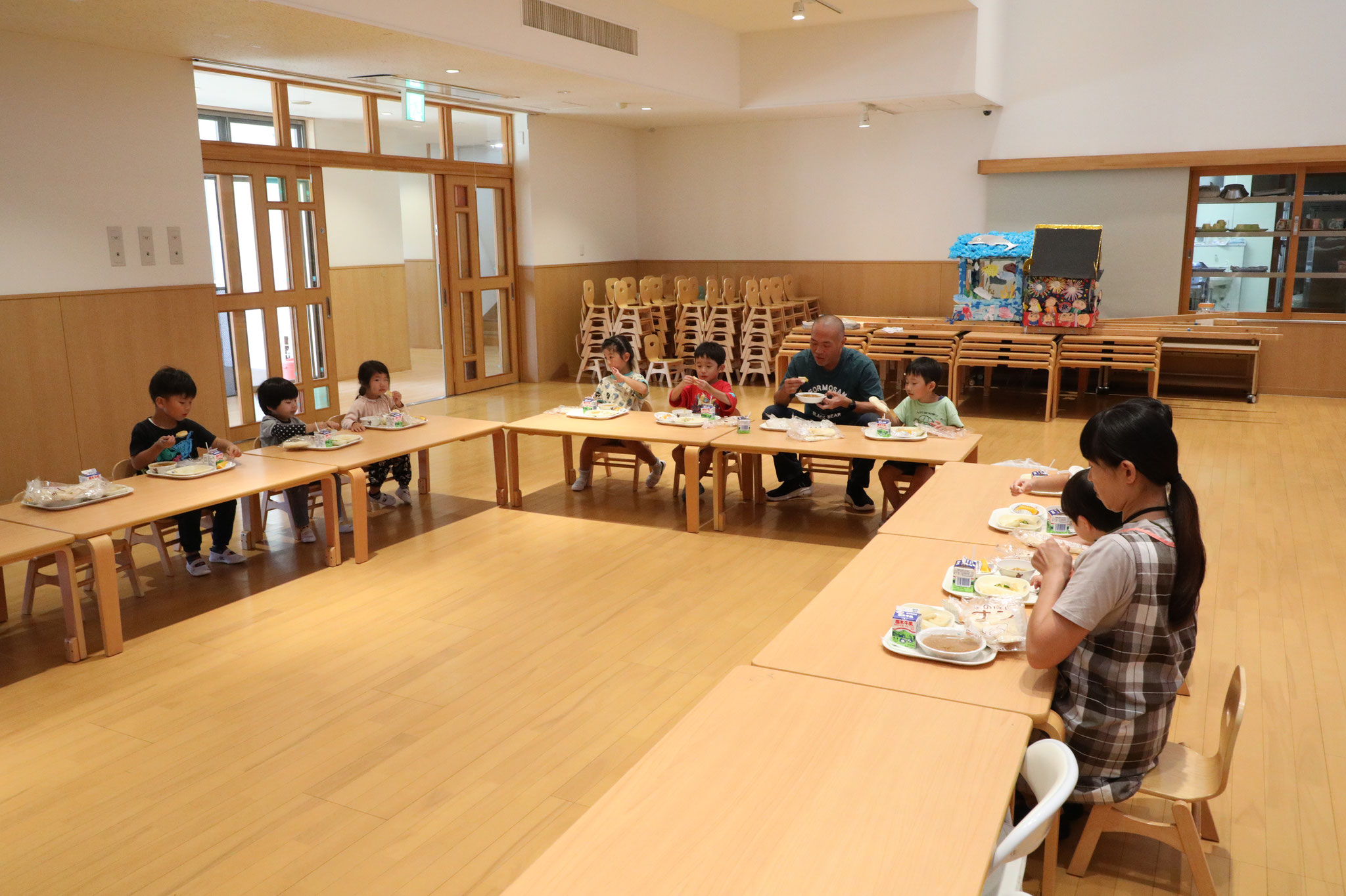 今日は10月生まれの3・4・5歳クラスのお友達をお祝いする、誕生日会食会を行いました。今回の参加者は9名、温かい雰囲気の会となりました。まずはそれぞれのお友達の紹介、そして会食スタートです。今回は園長先生、三柴先生、そして川口先生が会食に参加です。給食には珍しいナンがでて、子どもたちも先生と一緒にナンについてお話がはずんでいたようです。
